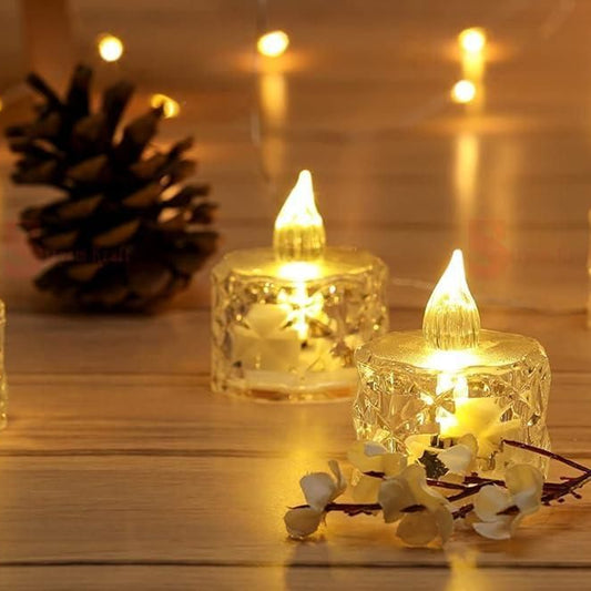 Radiant Crystal Glow – Set of 4 Flameless and Smokeless LED Tea Light Candles