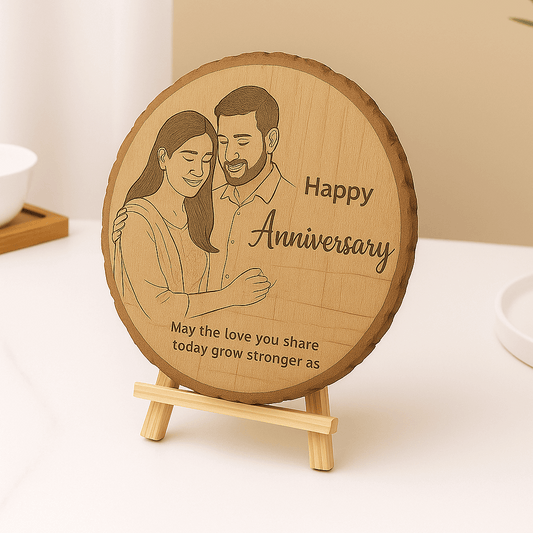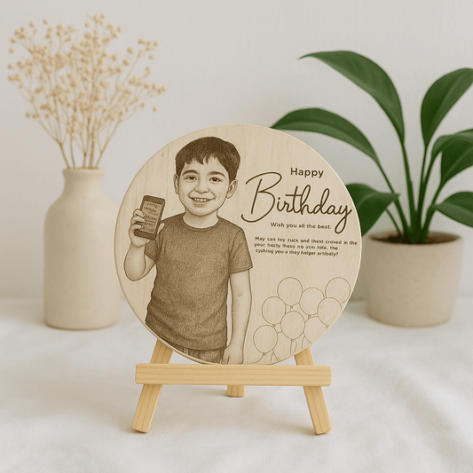 Personalized Natural Wood Round Engraved Photo - 6 Inch