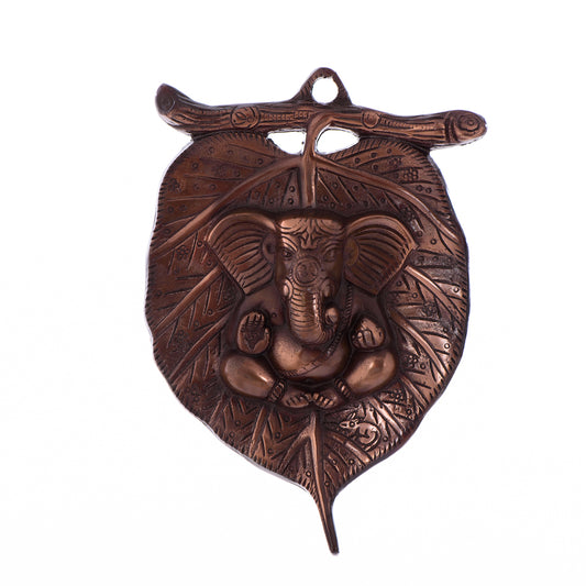 Divine Blessings – Metal Wall Hanging of Lord Ganesha on Leaf