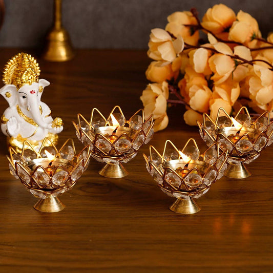 Lotus Glow – Set of 4 Crystal Lotus-Shaped Tea Light Holders